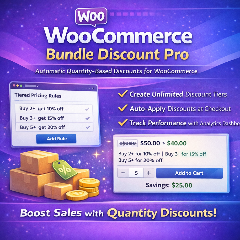 Increase your average order value with automatic bundle and quantity discounts for WooCommerce. No coupon codes required.